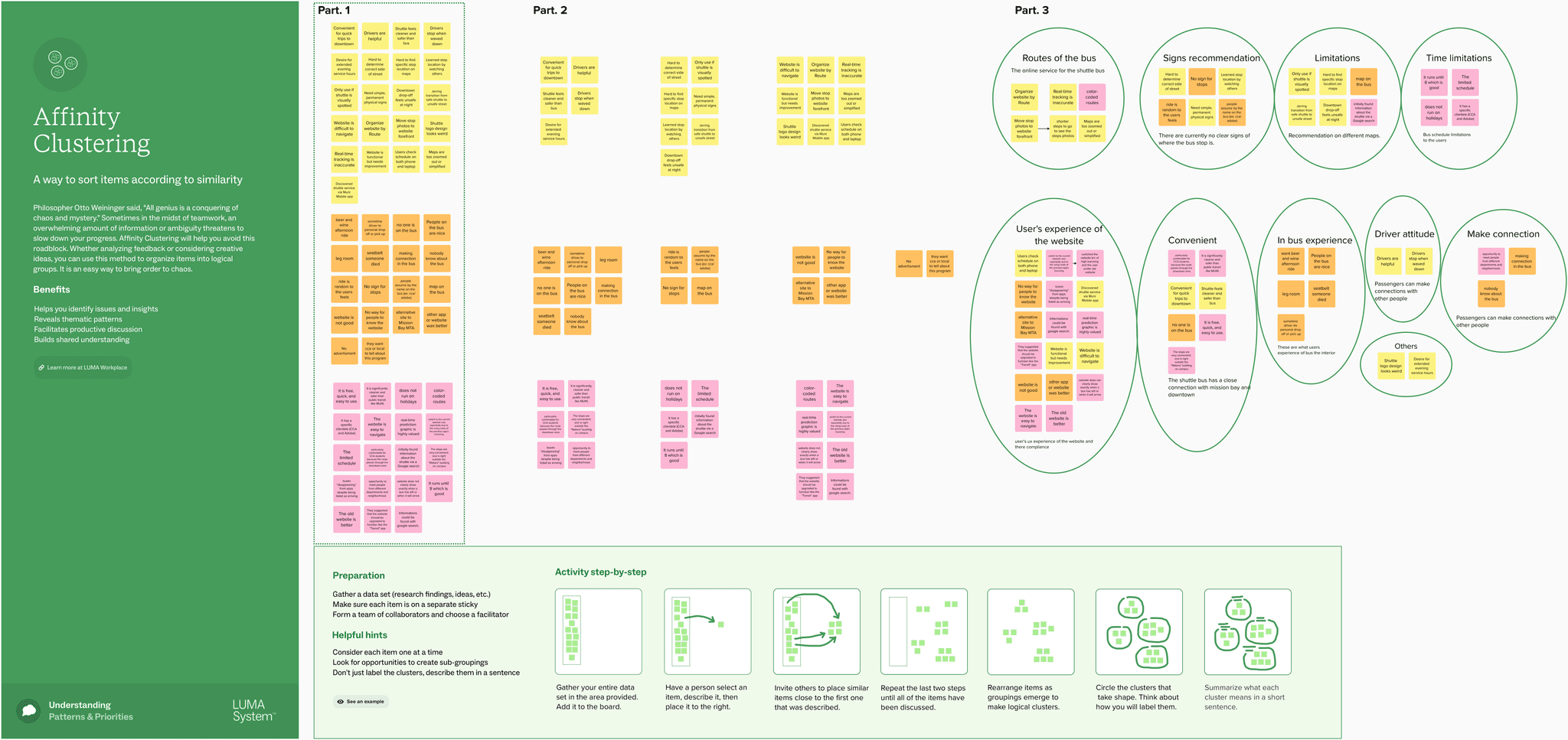 Insight: When asked for ideal improvements, most participants focused on informational clarity rather than changing the physical buses. Many suggested physical signage, route maps, or a more intuitive website.